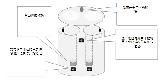 如何使用霍爾效應傳感器和電流檢測放大器進行真無線耳機設計圖2:無線耳塞傳感器的布置和使用