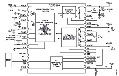 | ADP5360高檔電池管理PMIC解決方案 |