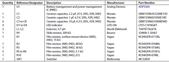 評估板ADP5360CB-EVALZ材料清單: