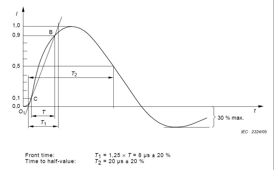短路電流波形(8μs / 20μs)