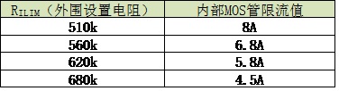 5. 外部限流設(shè)置電阻對(duì)應(yīng)的限流值