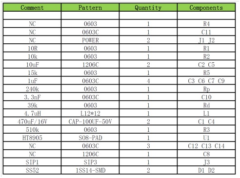 9. HT8905 DEMO板物料清單