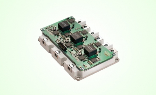 該可擴展平臺中的第一款產品是一個三相1200V/450A碳化硅MOSFET智能功率模塊,它具有低導通損耗特性,導通電阻為3.25毫歐(mOhm),同時具有低開關損耗特性,在600V/300A時導通和關斷能量分別為8.3mJ和11.2mJ。相比最先進的IGBT功率模塊,其將損耗降低了至少三倍。新模塊通過一個輕質的鋁碳化硅(AlSiC)針翅底板進行水冷,結到流體的熱阻為0.15°C / W。該智能功率模塊可承受高達3600V的隔離電壓(經過50Hz、1分鐘的耐壓測試)。