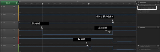 此外,要創建電源通斷按鈕,您仍然可使用/MR管腳,通過配置MRREC寄存器以進入運輸節電模式,并編程按鈕的持續時間,以確定需要保持低電平的時長;您剛剛創建了一個斷電按鈕。若要重新喚醒,請再次按下按鈕,如圖7所示。