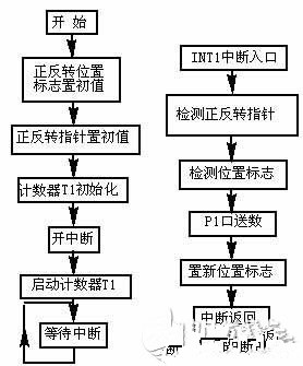 在程序的編制中,要特別注意步進電機在換向時的處理。為使步進電機在換向時能平滑過渡,不至于產生錯步,應在每一步中設置標志位。其中20H單元的各位為步進電機正轉標志位;21H單元各位為反轉標志位。在正轉時,不僅給正轉標志位賦值,也同時給反轉標志位賦值;在反轉時也如此。這樣,當步進電機換向時,就可以上一次的位置作為起點反向運動,避免了電機換向時產生錯步。