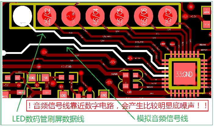 音頻信號走線等于一根天線饋線,走線越長感應到的噪聲越大,越容易受到噪聲的干擾。