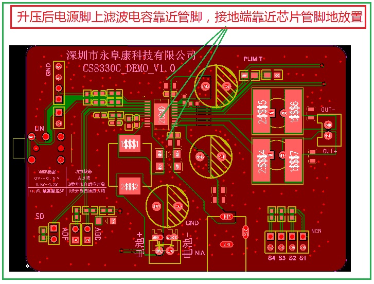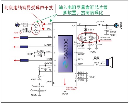 (1). 音頻功放芯片盡量靠近主控解碼芯片,音頻信號走線盡量短。