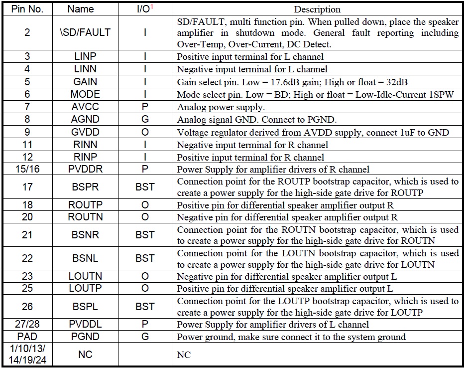 管腳兼容TPA3110/TPA3138/TPA3136/TPA3140/AD52068,方便客戶無縫切換。