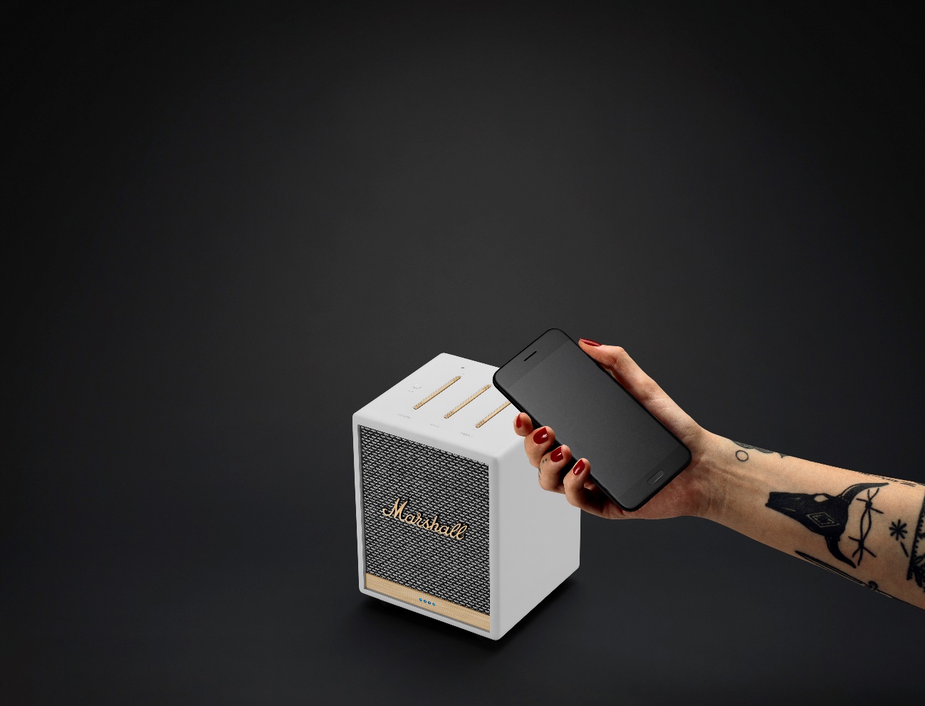 搖滾傳奇品牌 Marshall 家用音箱系列再添新員。Uxbridge 智能音箱融合了 Marshall 的經典傳奇之聲與騰訊小微智能語音功能,輕松實現聲與智的互動升級。
