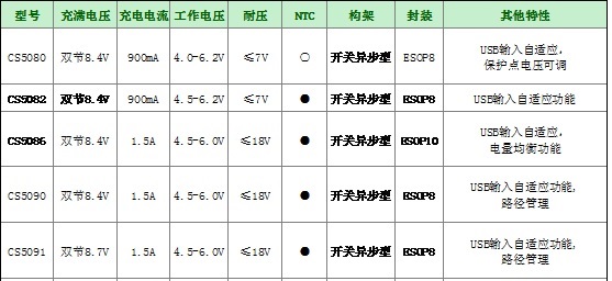CS5086E是一款5V USB輸入,支持雙節串聯鋰電池/鋰離子電池的升壓充電管理IC。同時集成有NTC功能和電池自動電量平衡功能,其最大的充電電流可達1.5A。 |