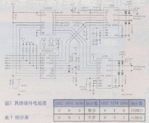 通常步進電機的脈沖控制是由邏輯電路或專用芯片實現的脈沖環形分配的,因A3955不自帶環形分配功能,本設計采用兩片A3955驅動步進電機的兩個線圈,來實現脈沖環形分配的實現。