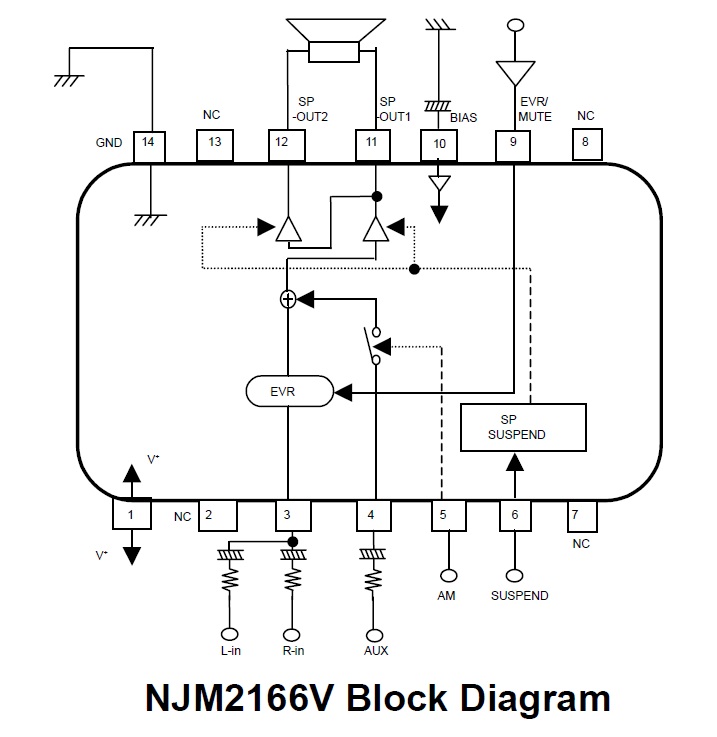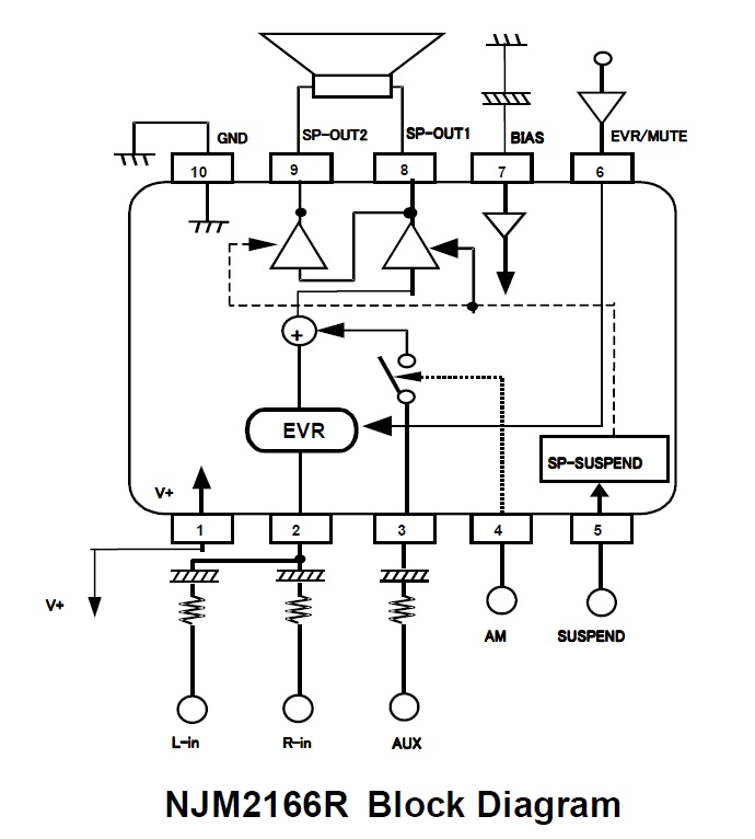 NJM2166是可從2.7V開始動作的單聲道功率放大器。本IC集成靜音功能、待機功能和AUX輸入等功能,適用于移動通信設備的音頻再生輸出部分。另外,考慮到在移動設備MCU和DSP的控制電路需要低電壓動作,所以本IC的控制部分是由3V的邏輯電路構成。