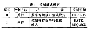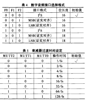 F0、F1、F2與FO/DATA、F1/REQ、F2/SCK腳的控制方法相同,其主要作用是選擇數字音頻接口格式,具體操作如表4所列。