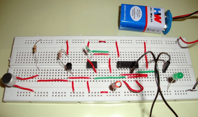 我們使用電容麥可分來感知聲音,三極管來觸發555定時器,而555定時器來設置和重置D觸發器,而D觸發器來則用于記憶下一次拍手/聲音之前的邏輯電平(LED打開或關閉)。