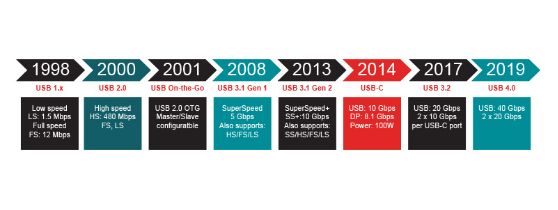 圖1:USB協議的發展歷程——2019年發布USB 4.0