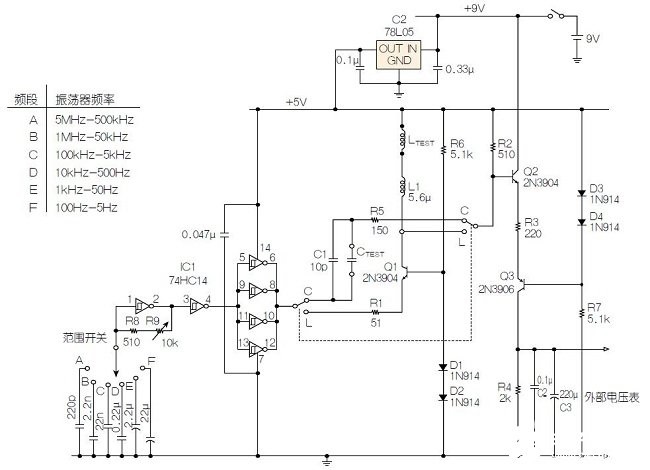 圖2:電容/電感表完整原理圖。