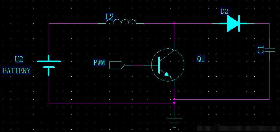 升壓模式——Boost mode,這個也很常見,也是DC-DC的一種。當整個電路只使用單個電源(比如3.7V鋰電池)供電時,可以通過降壓輸出3.3V、1.6V等較低電壓給IC供電,有時候電路中需要更高的電壓,比如一些移動設備的屏幕就需要較高電壓驅動,比如12V,在移動設備中再增加一個12的獨立電源不太現實,而且鋰電池一般都是3.7V(充滿電為4.2V),這個時候就需要使用到升壓電路了,這個也有對應的IC,一般要配合電感、電容實現升壓和降壓模式中DC-DC的連接方式不一樣。通過閉合開關給電感充能,斷開開關則電感的電動勢和電源串聯,提高電壓。可以通過PWM的占空比來調節輸出電壓,當占空比為50%時,輸出電壓為輸入電壓的2倍。升壓的基本電路如下圖所示: