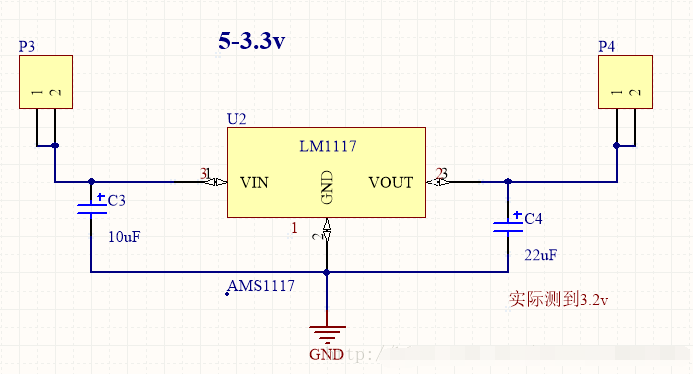 5v轉3.3v用AMS1117電路圖如下: