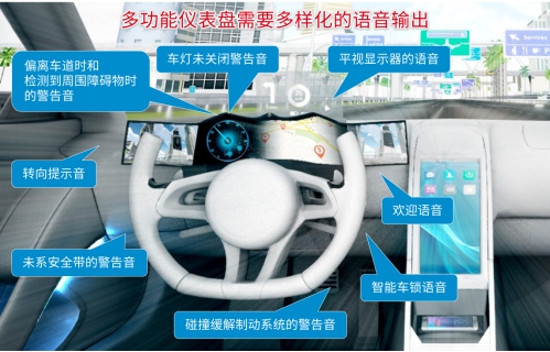 輸出上述ADAS和AVAS語音的系統(tǒng),大致分為使用蜂鳴器的系統(tǒng)和使用揚聲器的系統(tǒng)。前者雖然成本很低,但可播放的頻率有限。而后者與音頻設(shè)備一樣,可在更寬的頻段播放。很長一段時間以來,駕駛艙周圍只需要轉(zhuǎn)向提示音和蜂鳴聲就足夠了,不需要多樣化的語音。但現(xiàn)在,由于駕駛艙周圍所需要的語音呈現(xiàn)多樣化趨勢,導(dǎo)致出現(xiàn)沒有揚聲器就無法配置系統(tǒng)的局面。