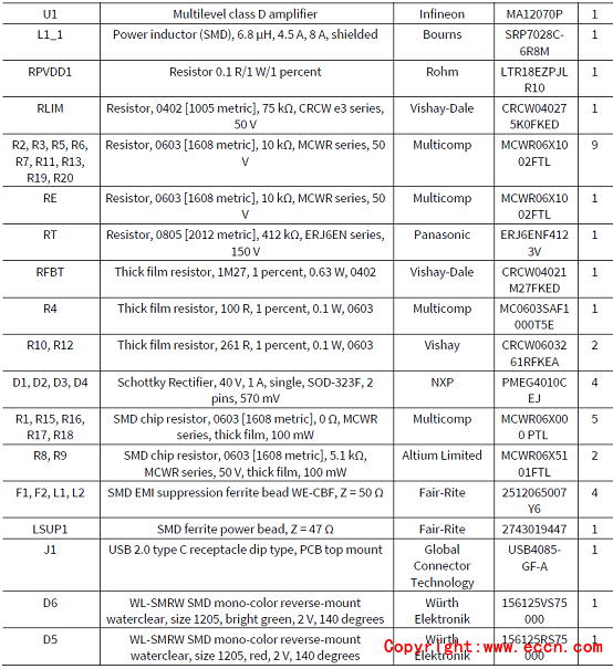 40W開發(fā)板KIT_ARDMKR_AMP_40W材料清單: