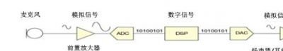 如圖1所示,傳統的音頻信號鏈中有麥克風、前置放大器、模/數轉換器(ADC)、數/模轉換器(DAC)、輸出放大器,以及揚聲器,它們之間使用模擬信號連接。但是,由于模擬電路被推到了信號鏈的邊緣,信號鏈中各集成電路間將出現更多數字接口。DSP通常是數字連接,換能器、放大器一般而言只有模擬接口,但現在也正在包含數字接口的功能。
