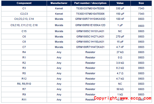 圖2應(yīng)用電路圖中的外用元件表: