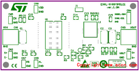 圖5.評估板EVAL-RHRPMPOL01 PCB設(shè)計圖:頂層裝配