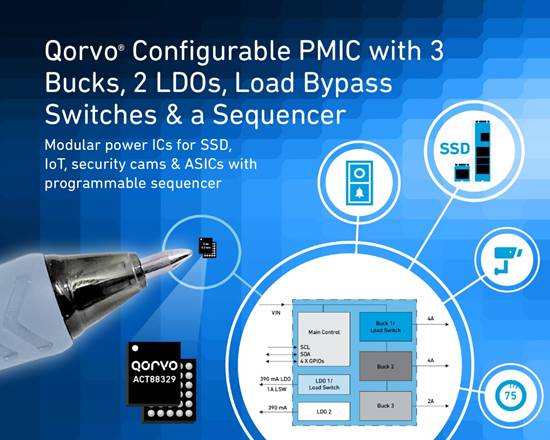 移動應(yīng)用、基礎(chǔ)設(shè)施與航空航天、國防應(yīng)用中 RF 解決方案的領(lǐng)先供應(yīng)商 Qorvo®, Inc.(納斯達(dá)克代碼:QRVO)今日宣布,推出新一代多重時(shí)間可編程電源管理 IC (PMIC)---ACT88327/8/9/1,該電源管理 IC 針對高性能和緊湊設(shè)計(jì)進(jìn)行了優(yōu)化。