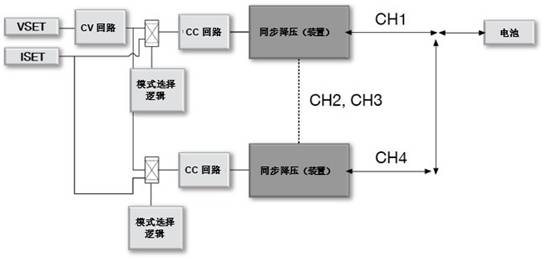 適用于成本優化型電池測試系統的數字控制參考設計使用并聯連接的多個獨立控制、低電流電池測試儀通道,以滿足不同等級的高電流電池測試儀的需求。通過簡易的軟件更改,即可將參考設計配置為多相操作,如圖2所示。在多相配置中,每個相使用并聯連接的獨立恒流回路。在恒壓模式下,將一個恒壓環路連接到所有的恒流環路以確保電流均衡。因此,相同的測試環境可提供多個輸出電流范圍。