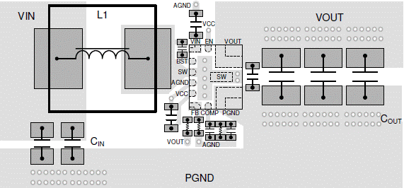 · 輸入電容應盡可能靠近VIN引腳和PGND引腳,并使用最短的走線連接。