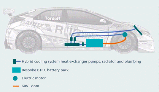 BTCC 規定,車手可以戰術性地使用電機提升車輛性能,并提高車輛加速能力。為此,Delta Motorsport 設計了新的電池組和相關電子產品。全新的 48V 鋰離子電池組采用創新型智能電源管理及高功率密度 DC-DC 轉換器和穩壓系統。電池組為逆變器 - 電機組合供電,并使用其產生的再生電力,同時高功率密度轉換器可為汽車的所有電路和設備供電。這種架構實現的功率密度和電源管理水平無需使用交流發電機系統,從而進一步減輕重量,提高性能與可靠性。