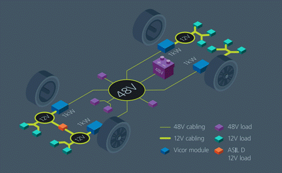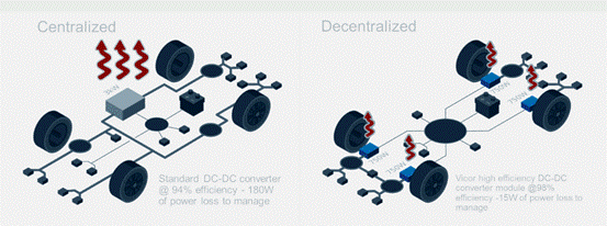 Vicor 全球汽車業務開發副總裁 Patrick Wadden 認為:“使用高密度積木式設計的 48V 分布式電源架構才是更具優勢的做法。而且,不管是混動還是純電動車都可以使用這樣的方法。”