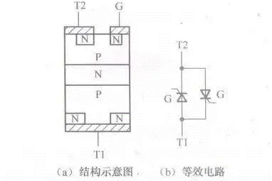 從等效電路中可以看出,雙向晶閘管相當(dāng)于兩只普通晶閘管反向并聯(lián)。