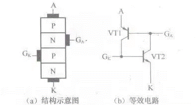 下圖所示是四極晶閘管結(jié)構(gòu)示意圖和等效電路。