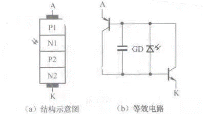 下圖所示是光控晶閘管結(jié)構(gòu)示意圖和等效電路。
