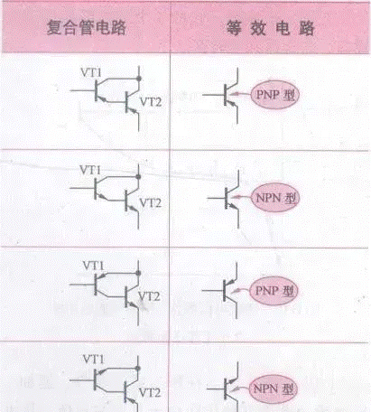 復(fù)合管極性識(shí)別絕招:2只三極管復(fù)合后的極性取決于第1只三極管的極性。