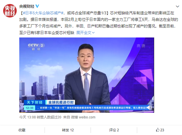 日前,據央視報道,本田2月上旬位于日本國內的一家主力工廠將停工5天,馬自達在全球的多家工廠下個月也將減產;豐田、日產和斯巴魯近期也都出現了減產的情況。