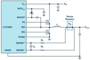 電流模式控制由于其高可靠性、環(huán)路補償設(shè)計簡單、負載分配功能簡單可靠的特點,被廣泛用于開關(guān)模式電源。電流檢測信號是電流模式開關(guān)模式電源設(shè)計的重要組成部分,它用于調(diào)節(jié)輸出并提供過流保護。圖1顯示了LTC3855同步開關(guān)模式降壓電源的電流檢測電路。LTC3855是一款具有逐周期限流功能的電流模式控制器件。檢測電阻RS監(jiān)測電流。