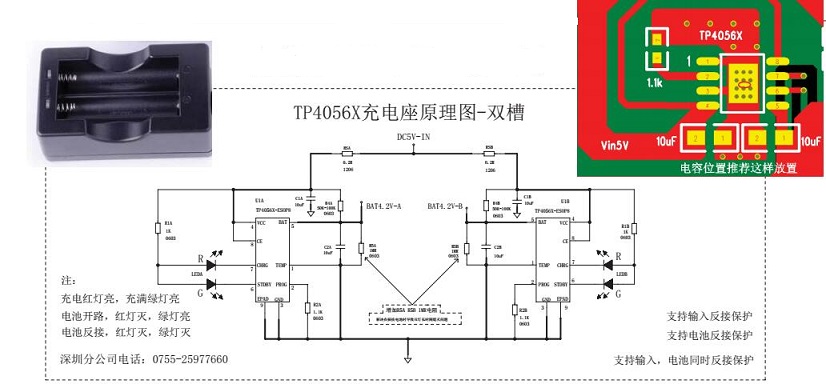 | TP4056X-各1A充電座原理圖 |