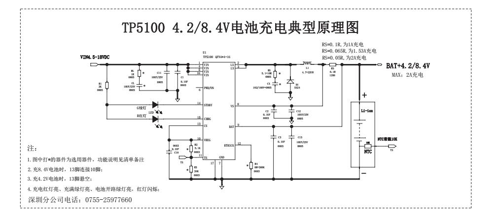 4. 如充單節 4.2V 鋰電池可把圖中 13 腳(CS 端)懸空不接,如接到 10 腳則為充雙節 8.4V 鋰電池;