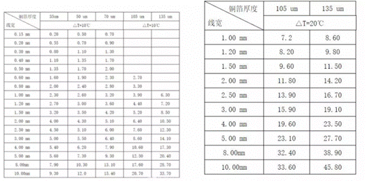 通過這兩個表,能得到的PCB布線經驗是:增加銅厚、加寬線徑、提高PCB散熱能夠增強PCB的載流能力。