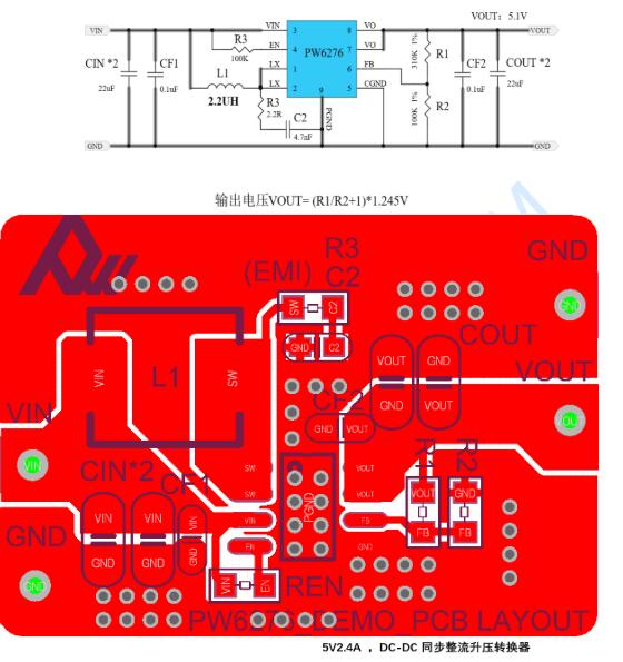 PW6276在電路圖和腳位上都與FP6276一樣,可在電路板PCB上兼容,不改PCB一起用的設計。方便快捷的方式。