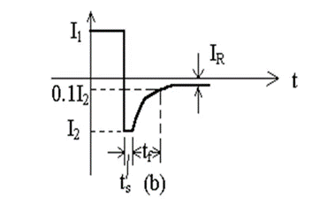 正向時積累在各區的大量少子要被反向偏置電壓拉回到原來的區域,開始時的瞬間,流過P-N結的反向電流很大,經過一段時間后,原本積累的載流子一部分通過復合,一部分被拉回原來的區域,反向電流才恢復到正常情況下的反向漏電流值IR。