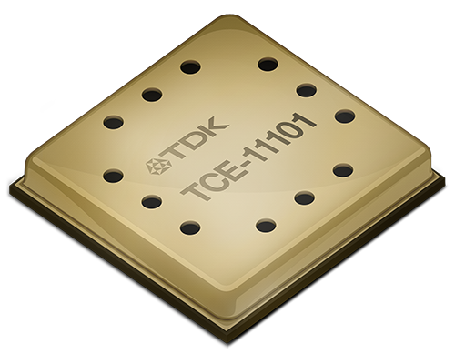 o  TCE-11101封裝在一個5mm´ 5mm´ 1mm28管腳LGA封裝中,配備了金屬帽并集成顆粒過濾器,確保長使用壽命。內部集成ASIC提供自動校準、數據上報,以及I2C接口用于數據輸出和器件配置。這使它可以非常容易地集成到幾乎任何應用中,它的低功耗也使它可以在電池供電的設備中使用。