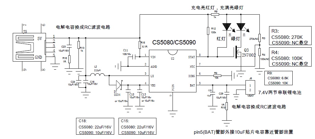 5V USB輸入,最大1.5A充電電流,帶NTC,雙節(jié)鋰電升壓充電管理電路 |