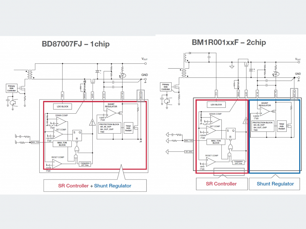 ROHM的SR控制器旨在提供易于集成的同步整流解決方案。該SR控制器能夠支持本文介紹的許多功能,并且只需要很少的外部組件。因此,ROHM的SR控制器在CCM和DCM模式下都能實現高性能的同步整流解決方案。SR-IC的其他可選型號還內置有并聯穩壓器,不僅具有靈活的接地參考,待機功耗也非常低。 |