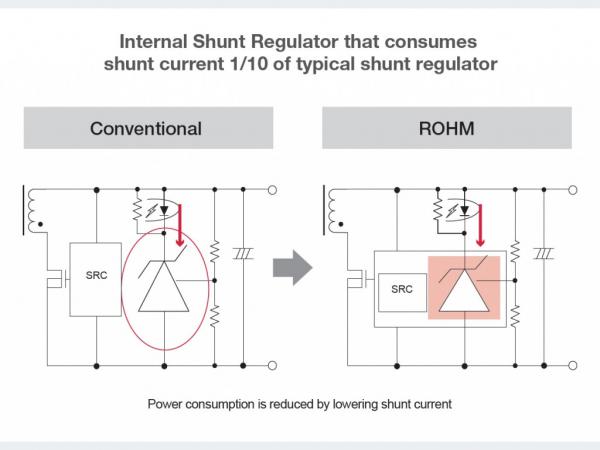 圖7:與傳統并聯穩壓器相比,ROHM的內部并聯穩壓器的并聯電流僅為十分之一(圖片來源:ROHM)