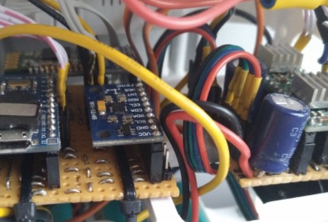 馬達(dá)板基于兩個(gè)來自RAMPS 3D打印機(jī)套件的A4988步進(jìn)驅(qū)動(dòng)器 兩個(gè)A4988步進(jìn)驅(qū)動(dòng)器均使用2個(gè)數(shù)字引腳分別用于速度和方向,并且都共享一個(gè)額外的數(shù)字引腳以啟用或禁用電動(dòng)機(jī)。我在每個(gè)驅(qū)動(dòng)程序上添加了3個(gè)跳線來調(diào)整微步設(shè)置,但是我使用的是1/16(機(jī)器人也可以在1/8上工作)。另外兩個(gè)100μF電容器有助于平滑流向電動(dòng)機(jī)的電流,主控和馬達(dá)板,紅外傳感器和微型伺服器均由LM7805穩(wěn)壓器及其兩個(gè)10pF電容器供電。 后來我添加了12V 3 LED燈帶,它直接連接到3x18650電池輸出上。