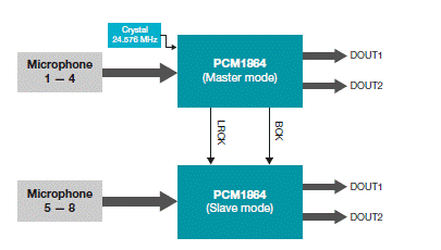 在采用多麥克風設計和語音識別時,我們也無需重新設計。基于PCM1864 的TI 圓形麥克風板(CMB) 參考設計(如圖 3 所示)使用兩個 4 通道音頻ADC 與一組模擬麥克風( 多含八個)連接,并且可以在嘈雜的環境中提取清晰的用戶語音指令。