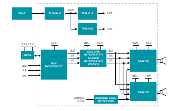 除此之外,我們還有許多設計問題需要解決,如麥克風、音頻輸出和揚聲器、電源管理、用戶界面以及無線連接應采用何種數量和類型。對于 OEM 廠商來說, 首要問題便是是否使用“黑盒”芯片組,其中包括用于音頻解碼和信號處理的片上系統(SoC)、集成 Wi-Fi?和藍牙無線電的微控制器(MCU)。有的時候,這還包括自定義電源管理IC (PMIC)。然而,這種“罐裝”式解決方案不能為產品差異化提供太多設計空間。現在就讓我們一起來看看智能音箱系統中的設計領域和挑戰。